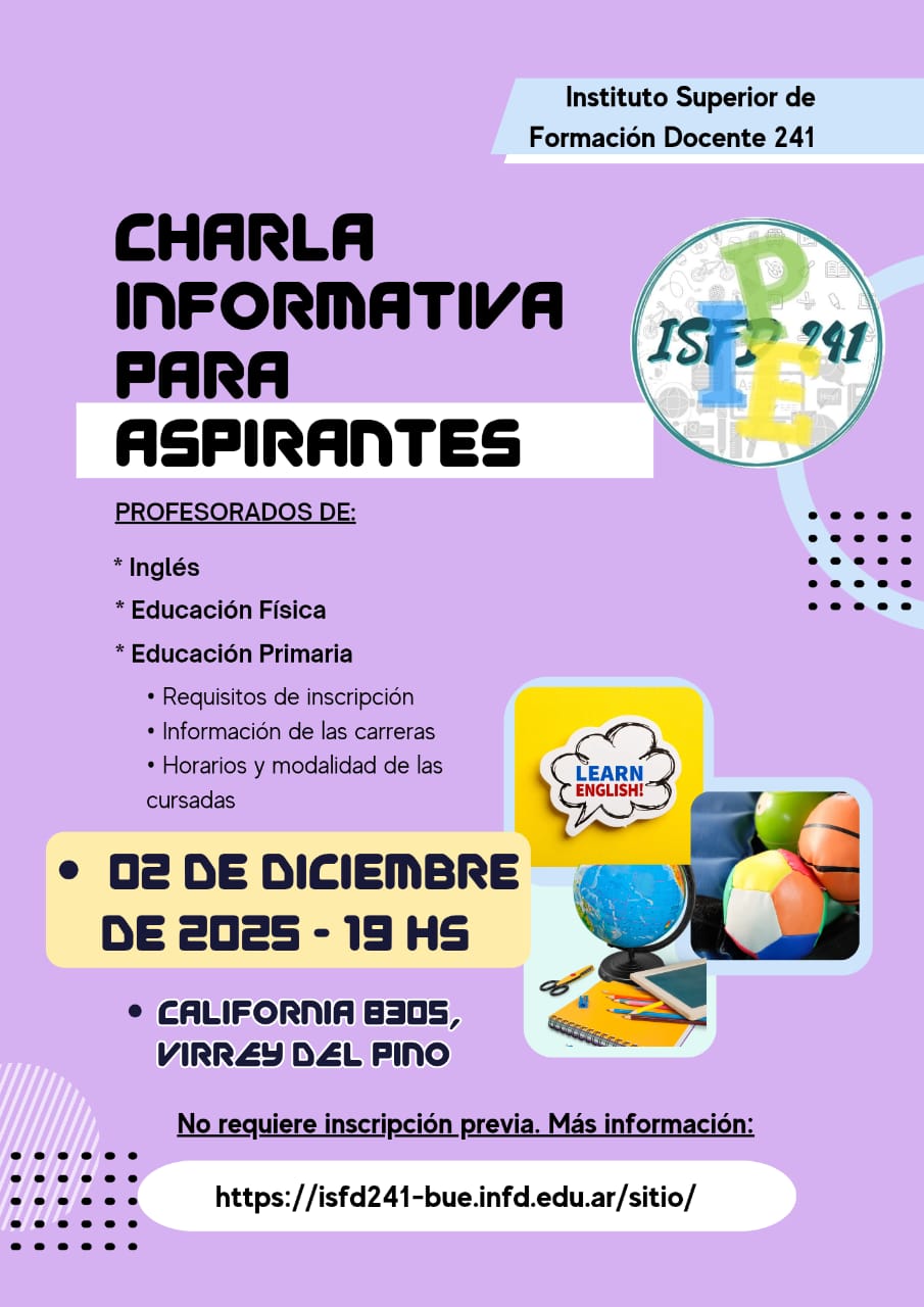 El formulario de inscripción será publicado por este espacio, el día 10/12/25 a las 9.00